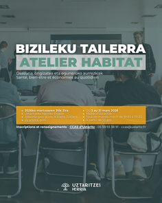 Du 3 au 31 mars 2026, le CCAS d’Uztaritze organise un atelier Habitat à la Mairie, en partenariat avec l’ASEPT et le Centre de ressources Arditeya Vieil Assantza.